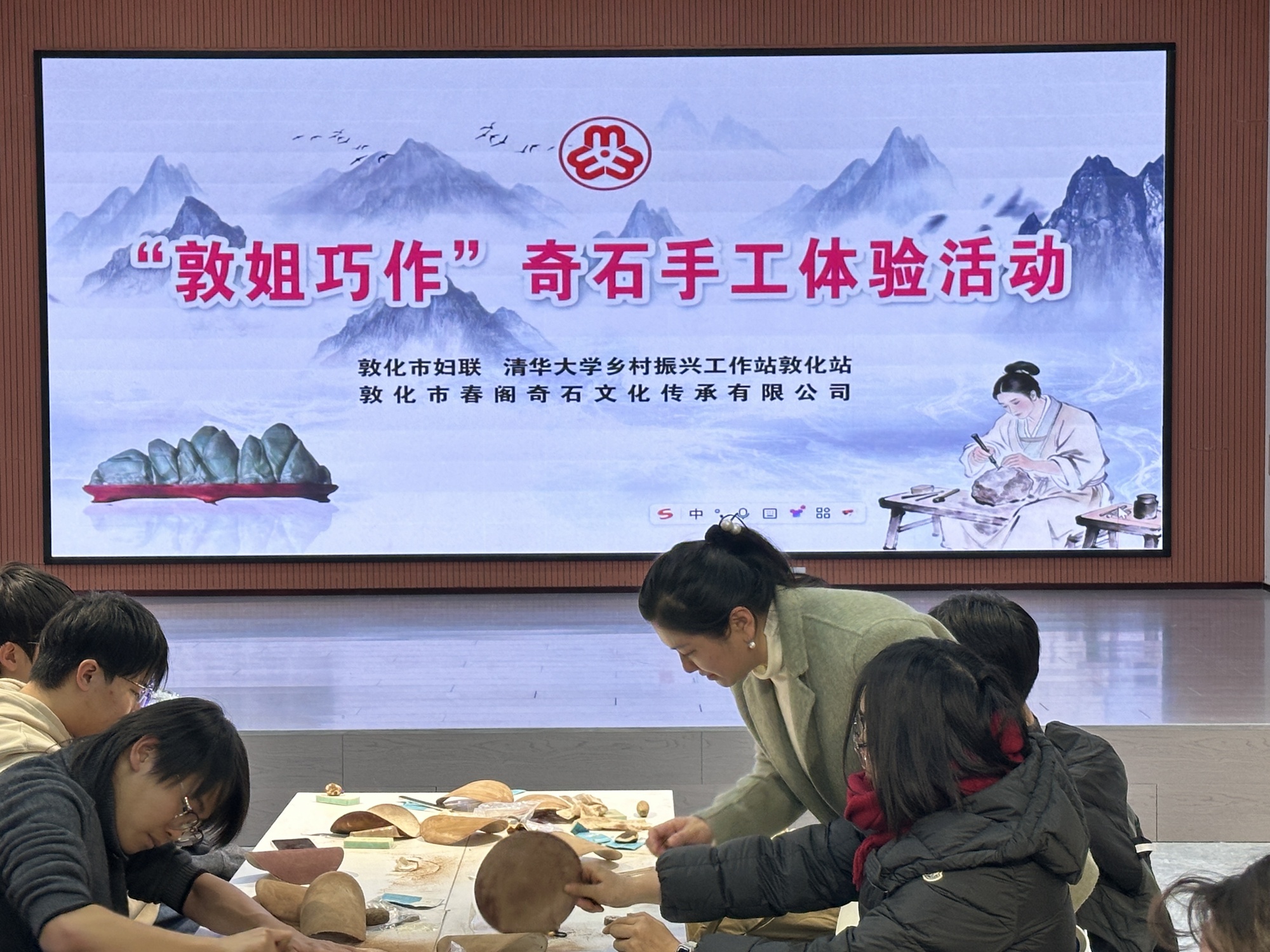 为深入推进“敦姐巧作”品牌建设,充分发挥妇女手工业在乡村振兴中的重要作用,1月22日,敦化市妇联携手清华大学乡村振兴工作站赴吉林敦化支队,走进市春阁奇石文化传承有限公司,开展妇女手工业发展专项调研,体验奇石手工制作,精准对接企业需求,共探产业发展新路径。