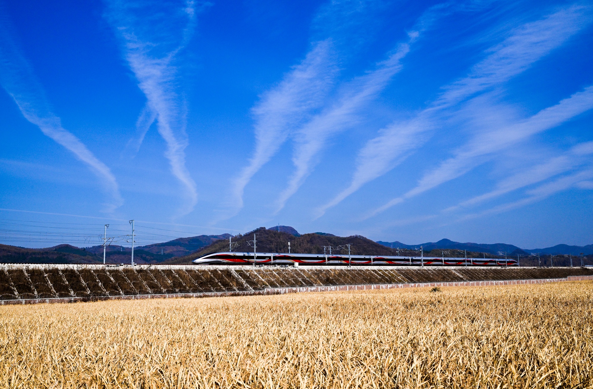 列车行驶在沈佳高铁沈白段线路上(央广网发 陈明 摄)