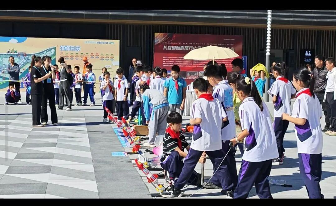 9月18日上午,长春市净月高新区第一届“逐梦蓝天·机箭启航”中小学生水火箭与纸飞机比赛在肆季南河隆重开幕。