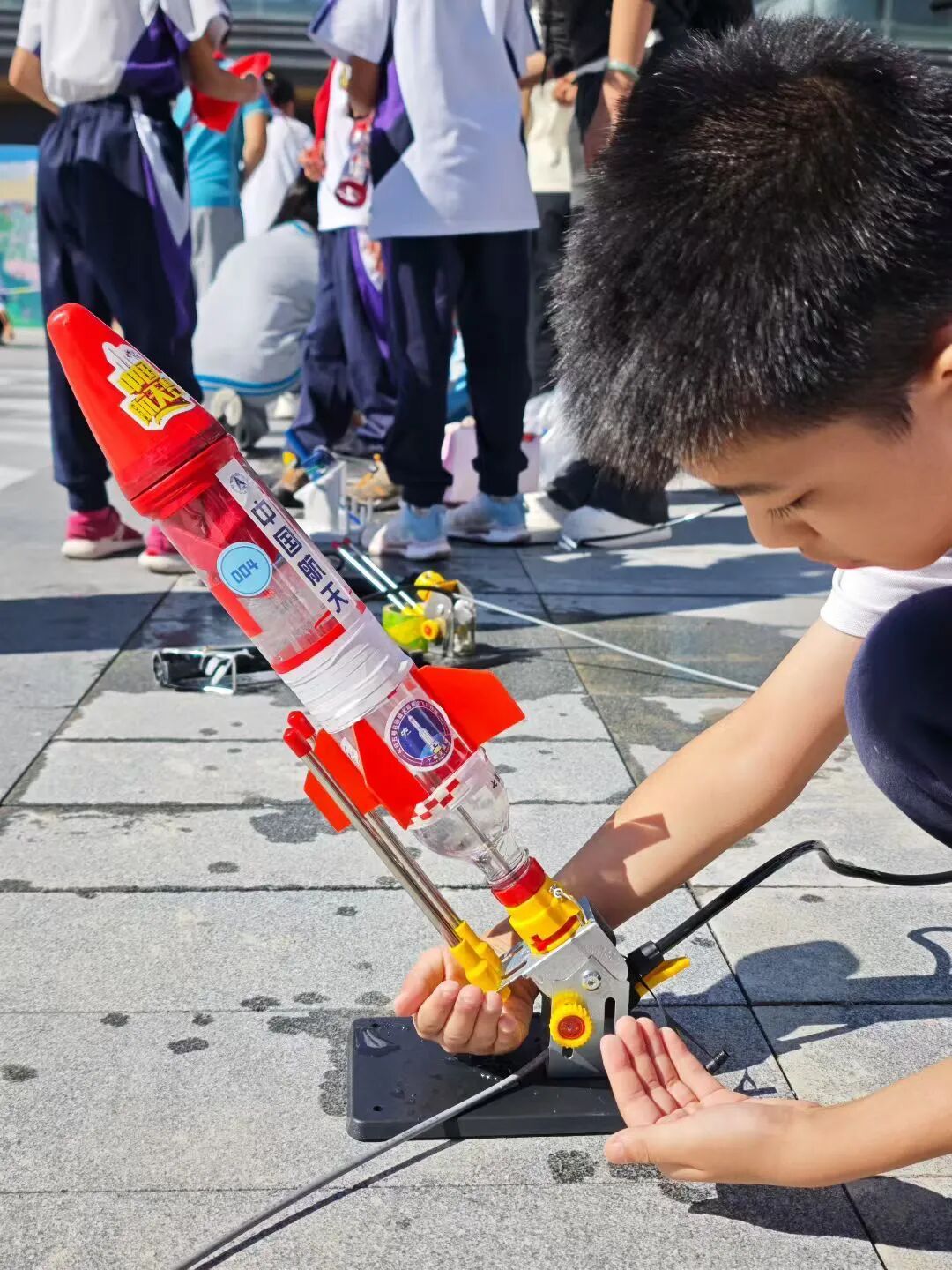 比赛中,水火箭的设计发射、纸飞机的折叠投掷成为学生探索力学与空气动力学原理的生动实践,助力他们在“做中学、学中思、思中创”中培养科学探索精神。孩子们在严守规则、安全操作,角逐成绩的同时,享受了创造带来的乐趣、收获了友谊陪伴的幸福。