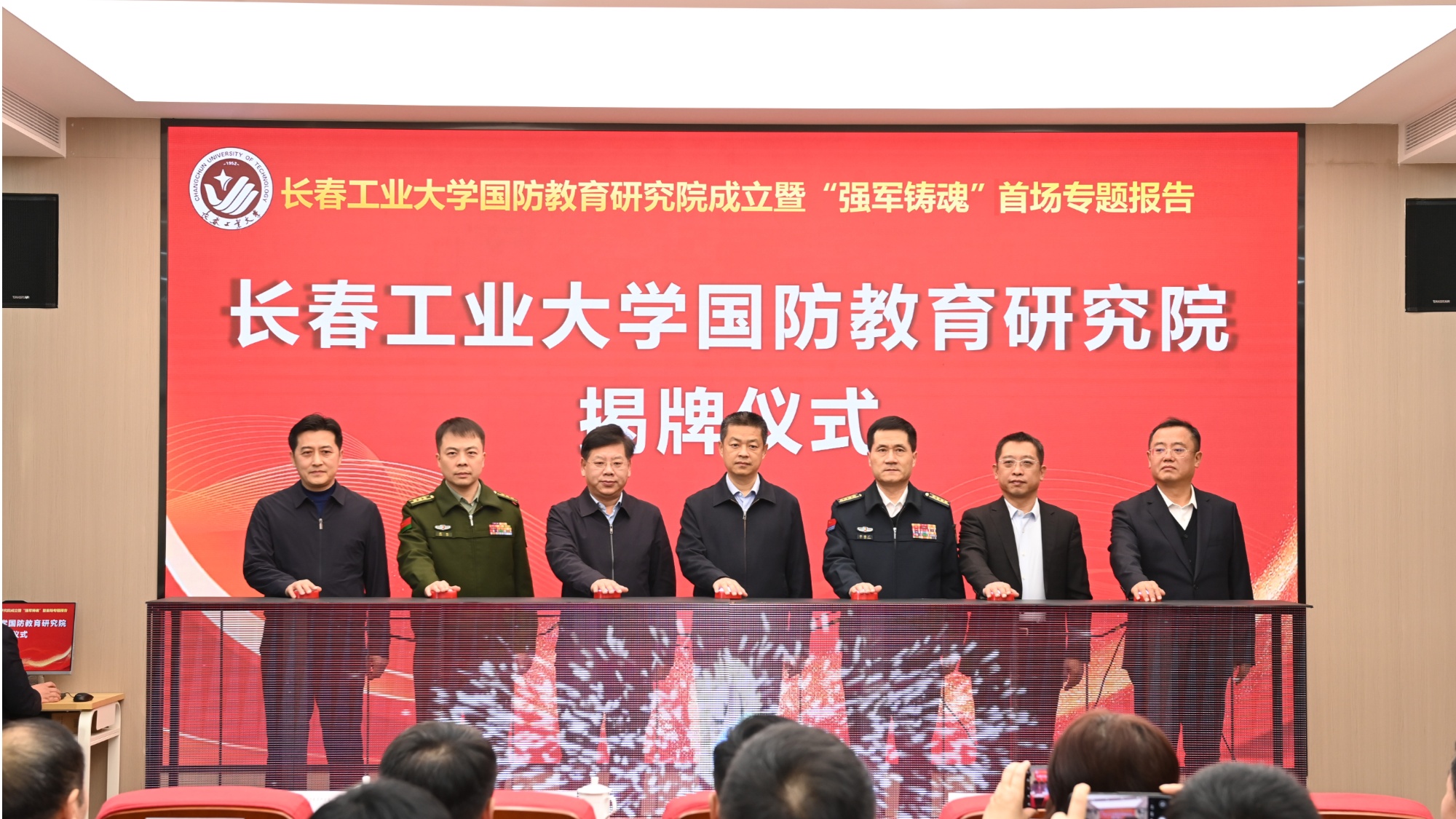 军地领导共同为“长春工业大学国防教育研究院”揭牌(央广网发 长春工业大学供图)