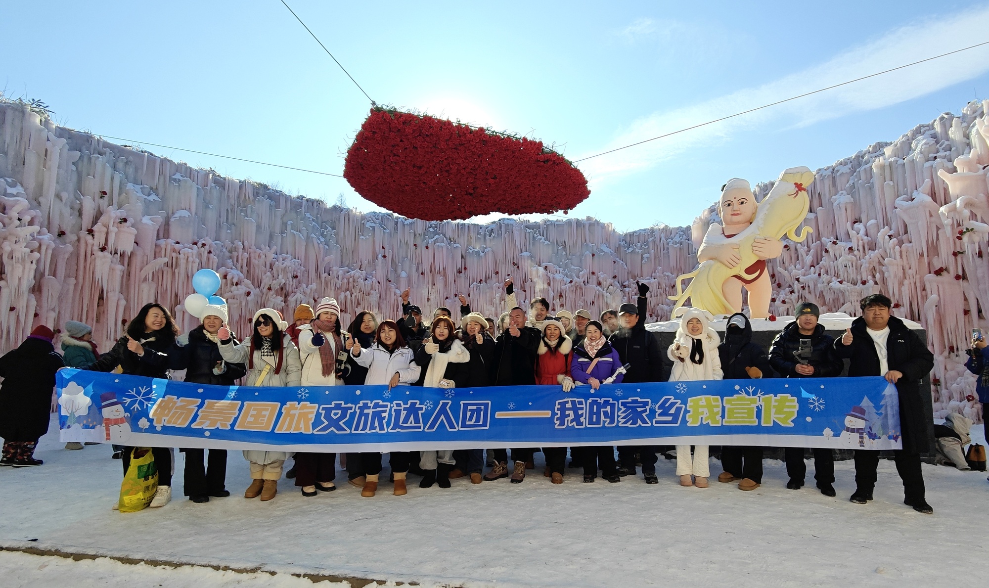 冬日的长白山大关东文化园银装素裹,宛如童话世界。启动仪式上,安图县文化馆的演员们身着盛装,为游客们带来了一场精彩绝伦的表演,瞬间点燃了冬日的激情与活力。随着五彩斑斓的气球在蓝天中缓缓升空并放飞,冰雪狂欢季正式拉开帷幕,游客们的欢呼声与掌声交织,驱散了冬日的严寒。