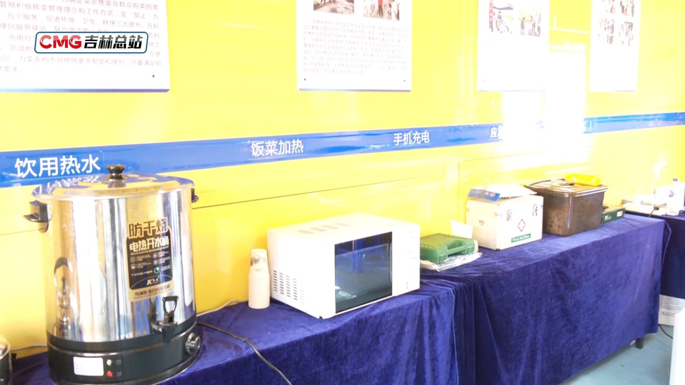 朝阳区城市管理行政执法局在每个销售点设置了便民服务驿站,配备饮用水、充电宝、小推车、工具箱及常用医药箱等物品,方便市民和菜农随时取用。